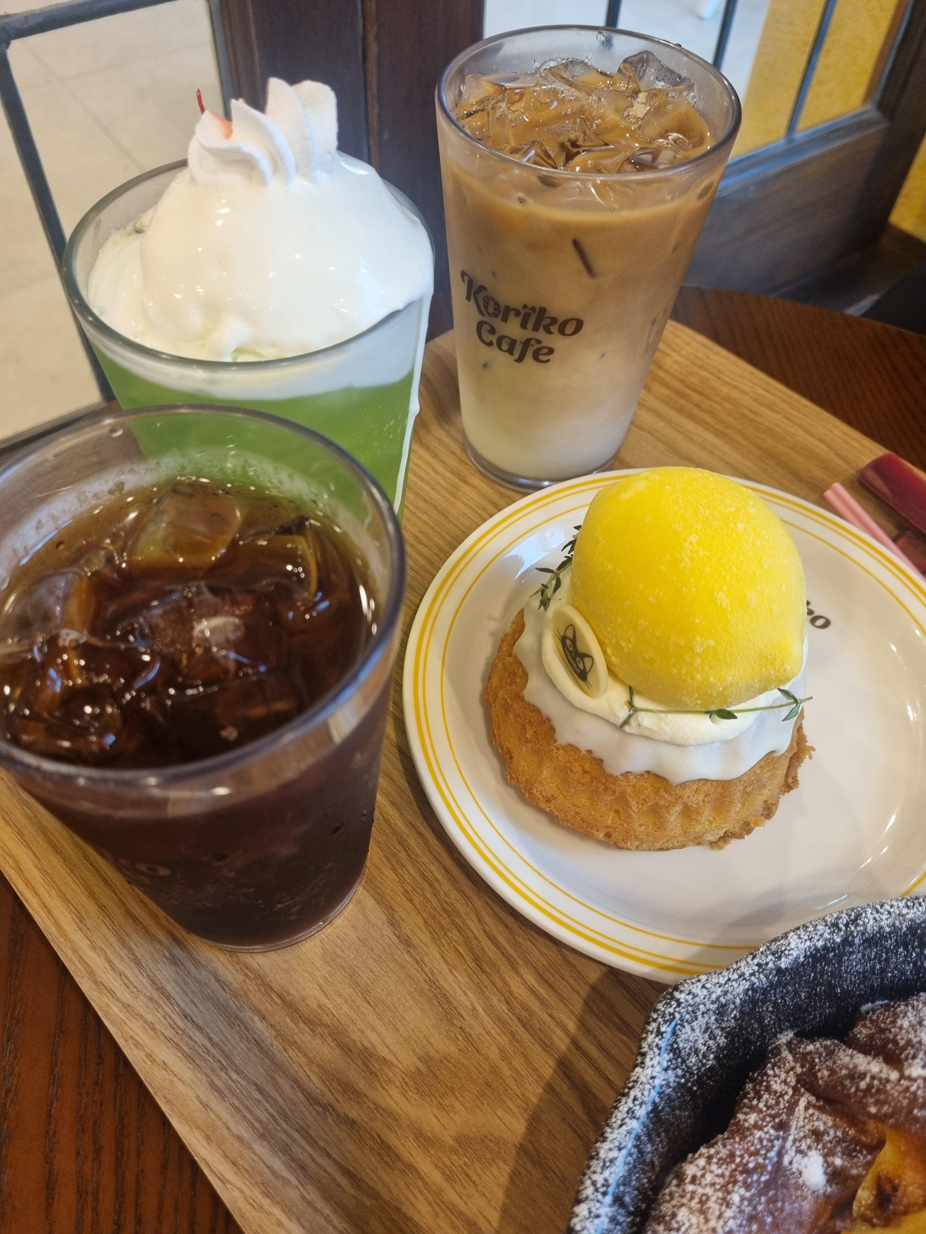 이 코리코카페는 매장이 넓고 기념품샾도 작게 있어서 오래머물기 좋은 장소이다. 그리고 음식과 음료가 다양해서 고르는 맛도 다양했다. 다만 가격은 당연히? 비싸서 아쉽긴 했다. 마녀배달부키키를 재미있게 본 사람들이라면 돈이 아깝지 않은 곳일 것이다. 아이스아메리카노도 딱 정석인 맛? 맛있었고 카페라떼가 더 맛있었다. 메론소다는 우리가 많이 생각하는 그런 맛이었다.
