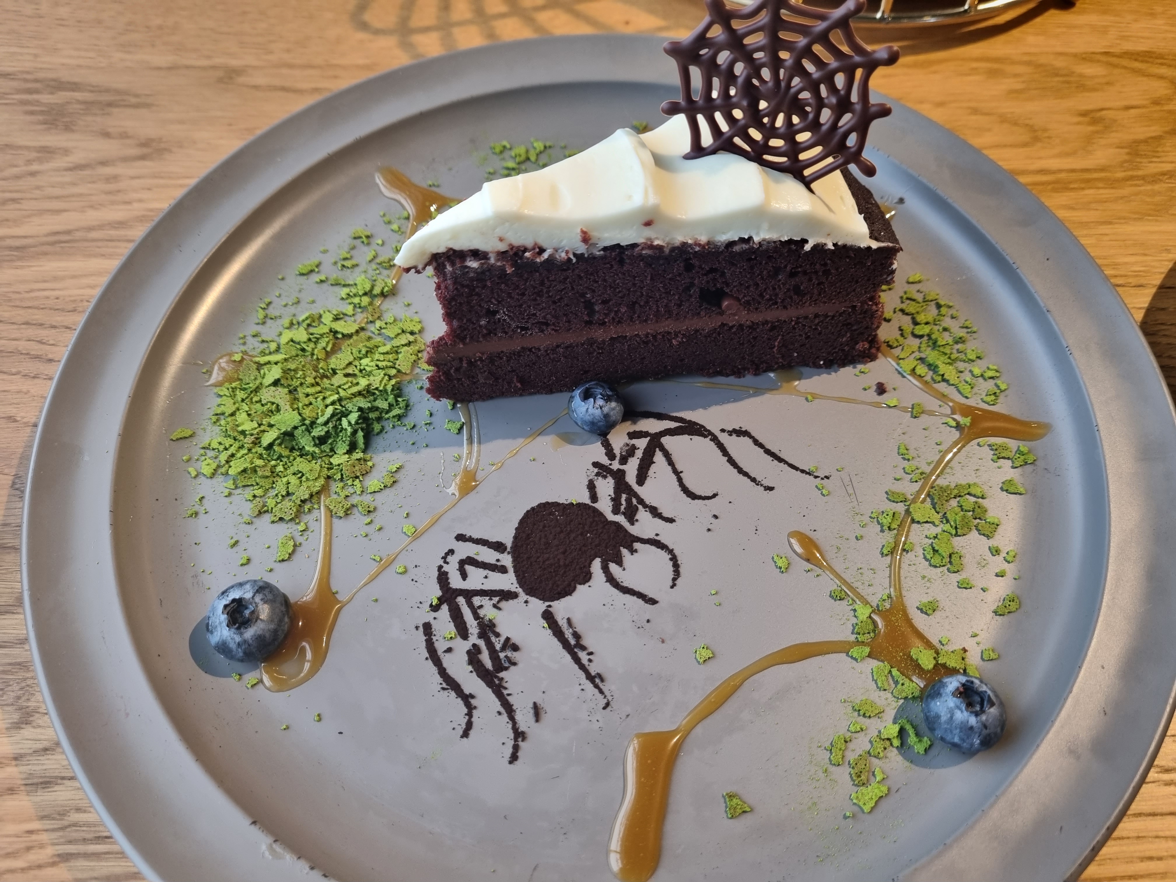 초코를 좋아해서 주문했는데 큰 그릇에 케이크가 한쪽에만 있어서 양이 아쉬웠으나 예술점수로 커버친 느낌입니다. 일반적인 초코케이크맛이고 촉촉한 느낌보다는 조금 꾸덕하면서 떡?과 같은 식감이 나기도 했습니다. 그래도 호불호는 강하지 않을 맛으로 보입니다.